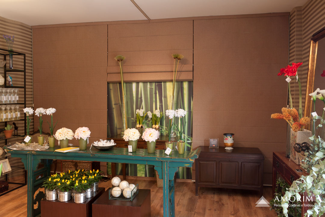 Disponível em diversas transparências, desde o voil até o blackout, a cortina romana atende a todas as necessidades de luminosidade dos ambientes sociais e íntimos da região, reforçando o prestígio da decoração interna.