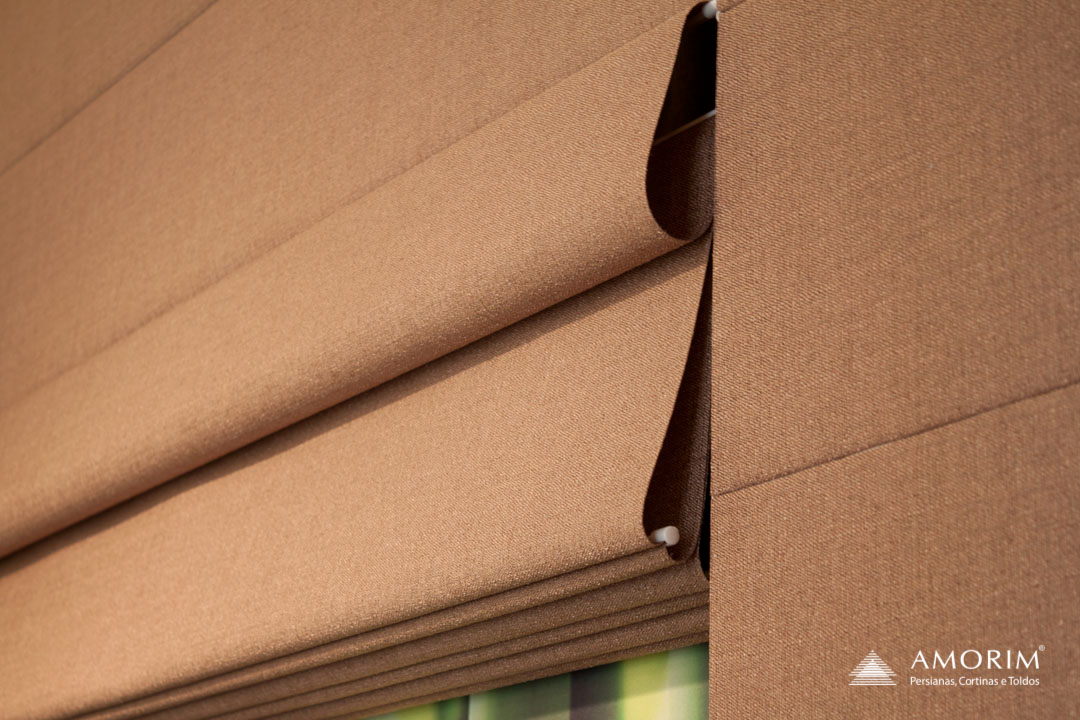 A cortina romana é um modelo clássico que se adapta a diversos estilos decorativos, do rústico ao luxuoso.